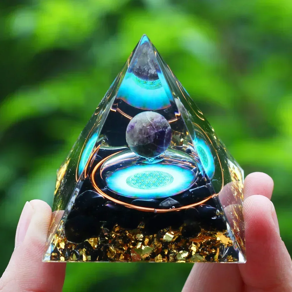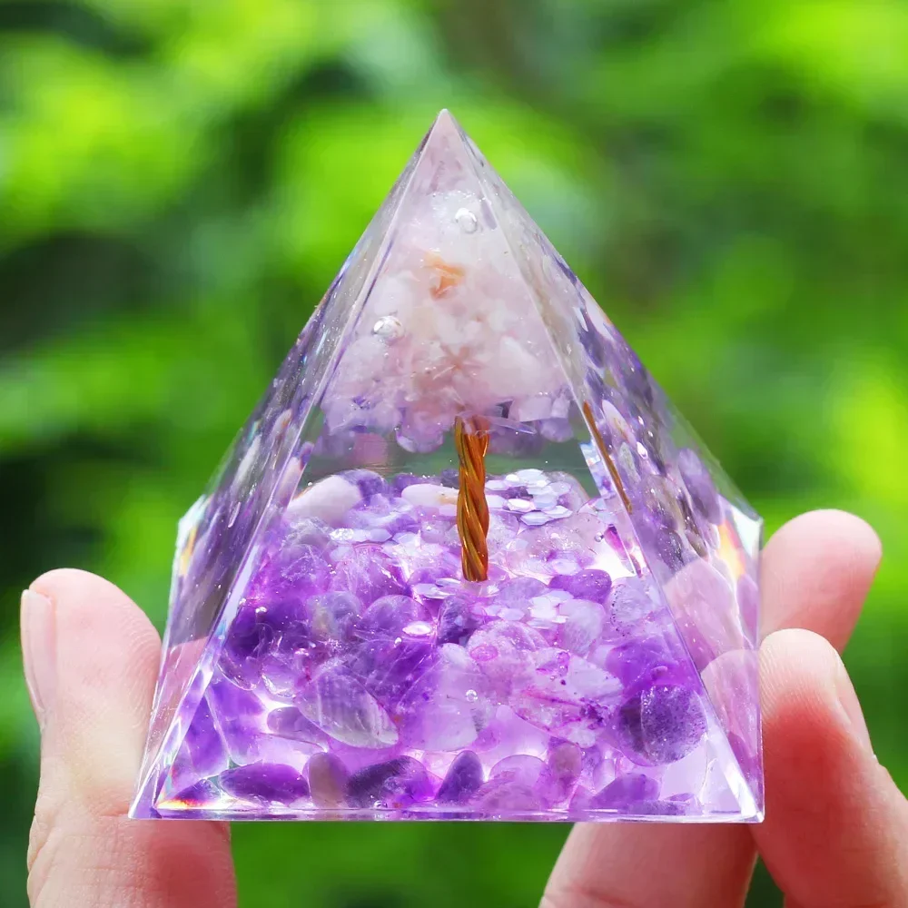 Crystals Stone Orgone Pyramid Natural Amethyst Peridot Reiki Chakra Energy Generator Meditation Tool Room Decor Christmas Gift